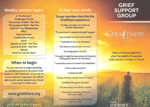 Our Grief Share ministry is back. Have you or someone you know lost a loved one? Come and receive help and encouragement from those who care.
